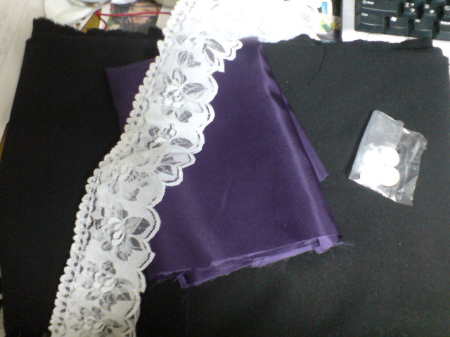 ならば襟の部分の紫のサテンとボタンとレースをいただくっ!